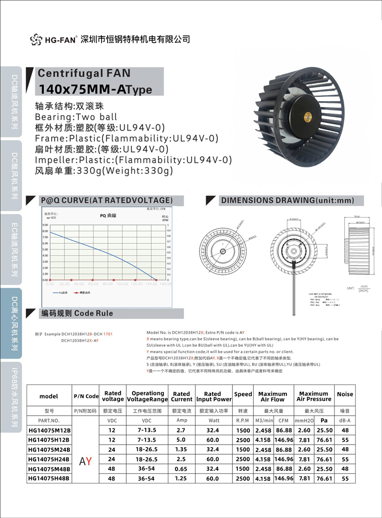 恒鋼特種機(jī)電-140x75MM前傾式離心風(fēng)機(jī)